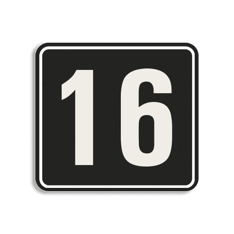 Huisnummerbord Alupanel 119x109mm met print van tekst / pictogrammen in reflectieklasse 3 (incl. anti-graffiti laminaat).