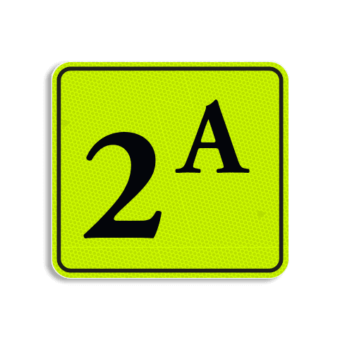 Huisnummerbord Alupanel 119x109 met print van tekst / pictogrammen in reflectieklasse 3 (incl. anti-graffiti laminaat).