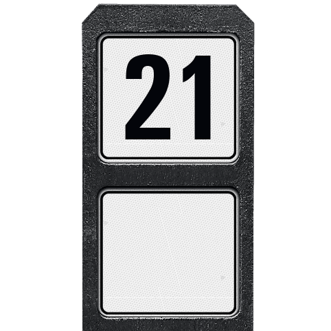 Bermpaal 1250x150x40mm met twee reflecterende bordjes 119x109mm met print van tekst / pictogrammen in reflectieklasse 3 (incl. anti-graffiti laminaat).