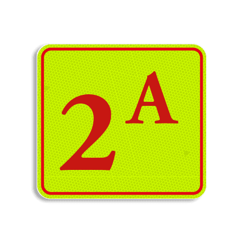 Huisnummerbord Alupanel 119x109 met print van tekst / pictogrammen in reflectieklasse 3 (incl. anti-graffiti laminaat).
