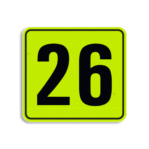 Huisnummerbord Alupanel 119x109 met print van tekst / pictogrammen in reflectieklasse 3 (incl. anti-graffiti laminaat).